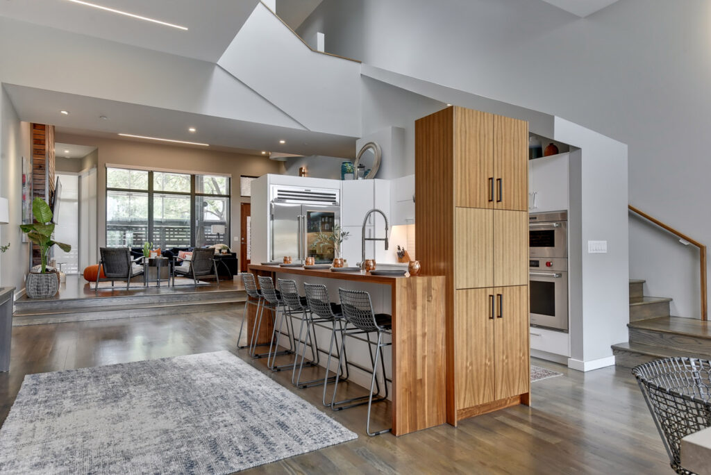 “The ideal buyer for this home is someone who appreciates and understands urban living,” Turner said. “This is a house, not a condo, which is extremely rare to find downtown. Especially one with a 2-car garage and private green space.” Space savers such as pocket doors are prevalent throughout the home. There is even a completely hidden bathroom behind a faux door off the kitchen.