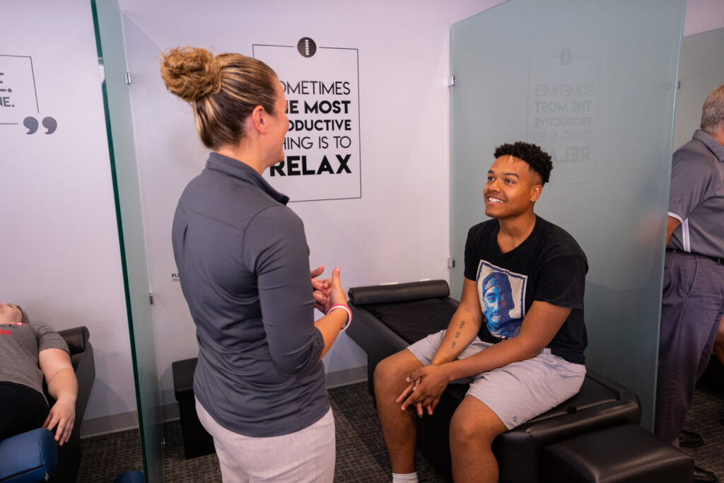 Angela and Dustin worked with more than 20 chiropractors across their clinics in Austin, so they knew what to look for when hiring for their Omaha clinic—excellent adjusting experience, practice management, bedside table manner, personality, and a vast knowledge outside of chiropractic. They also knew they wanted a female chiropractor on staff because certain patients, such as an expectant mother, sometimes prefer it. They ended up bringing on two chiropractors: Dr. Ron Evans and Dr. Brooke Sloan. Both have similar adjustment styles and met all the criteria. During peak hours, they overlap in the office, otherwise one or the other is always available.