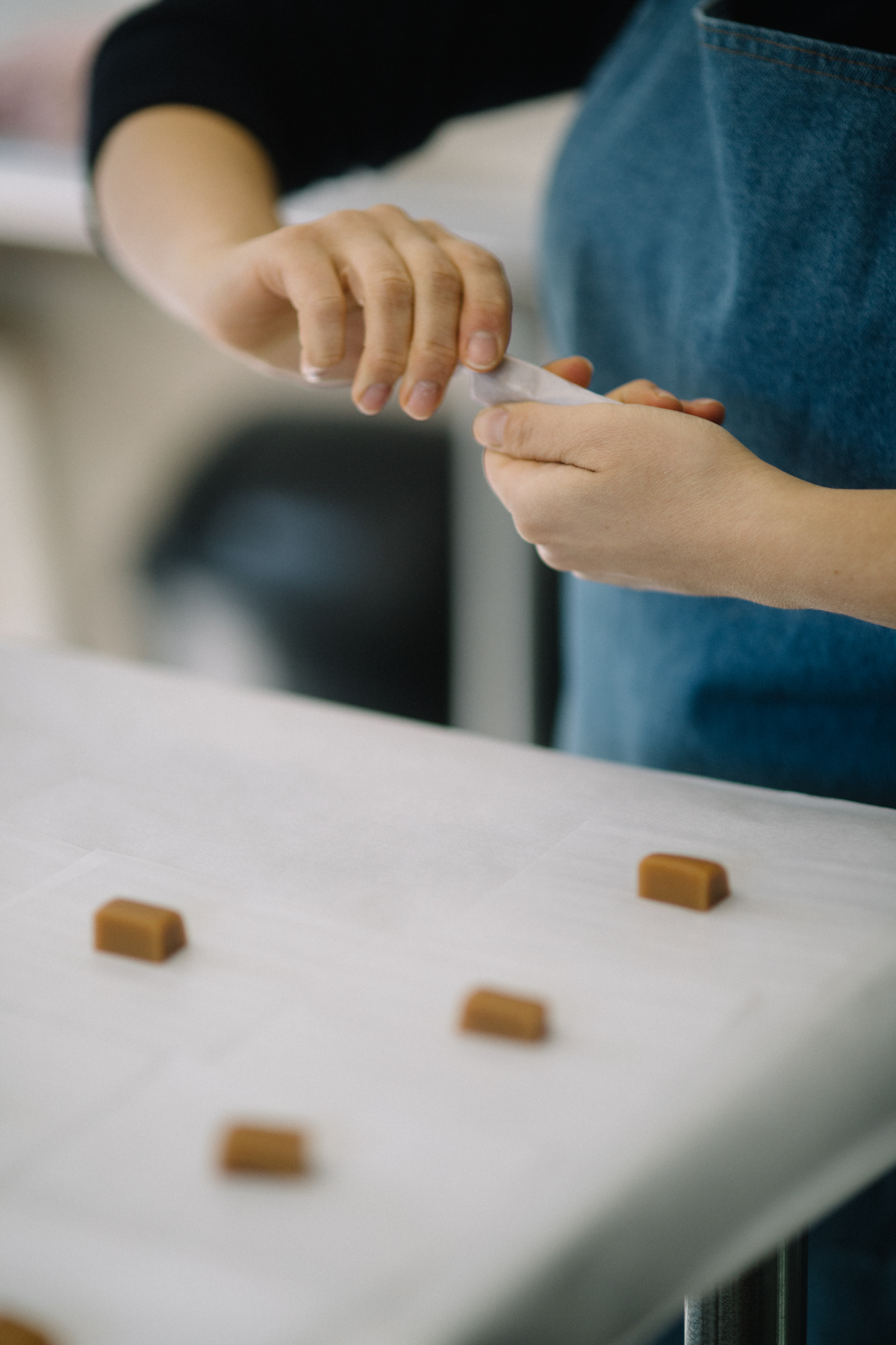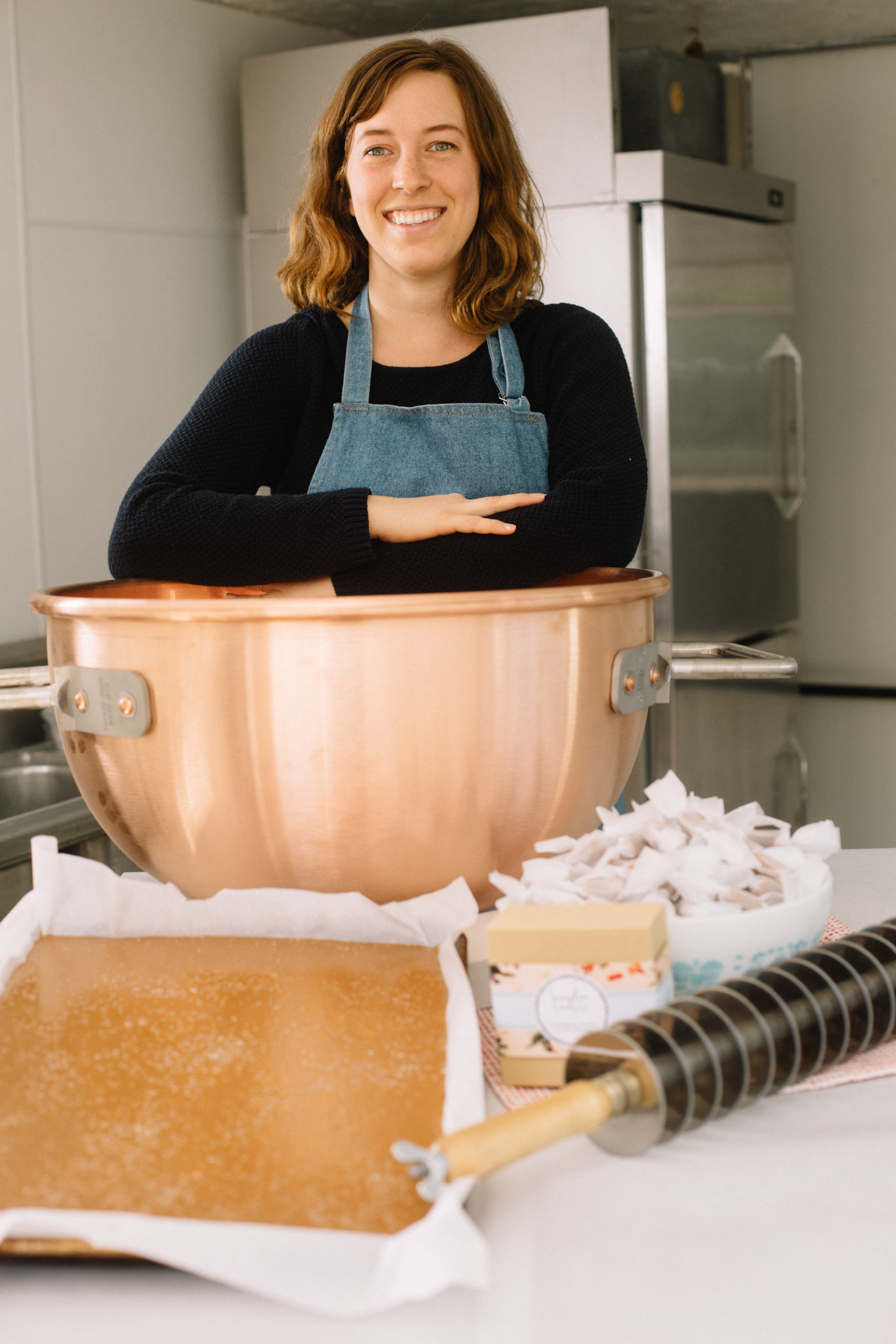 Ali Clark Yahnke’s favorite season for candy making has always been winter. Growing up in Wisconsin, she loved activities that imparted feelings of warmth and comfort such as cooking and knitting and has fond memories of enjoying handmade caramels from her grandfather at the holidays. One year at Thanksgiving she visited her grandparents and Ali’s grandfather taught her the craft of making caramels. Every year from then on, she has made many batches of caramel to share with friends and family, not knowing that one day her hobby would turn into a burgeoning candy business.