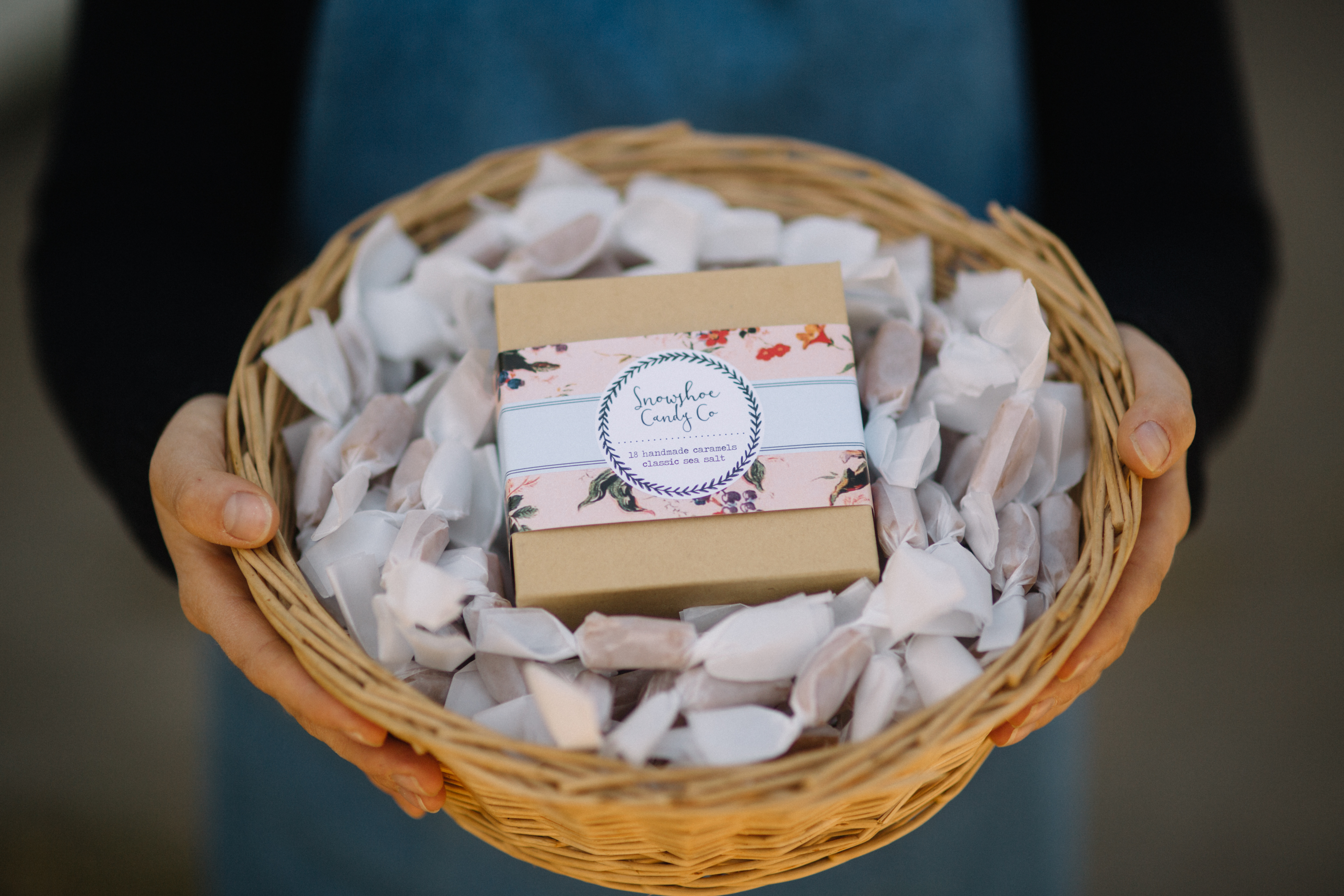 After moving to Omaha in 2011, Ali made small batches of caramels that she’d share with her new community. Having sold at the farmer’s market for her other job as a market farmer, she thought to bring a batch of caramels to the last market of the season. In no time she’d sold out, and soon customers asked how to get them to give as gifts for the holidays. Soon she was selling at holiday markets and as sales grew, Ali realized she wanted to turn her hobby into a business. Reflecting back on her love of winter, she recalled a time she had gone snowshoeing in the mountains, and the name seemed to fit perfectly: Snowshoe Candy Company, “a simple way to enjoy winter,” she said.