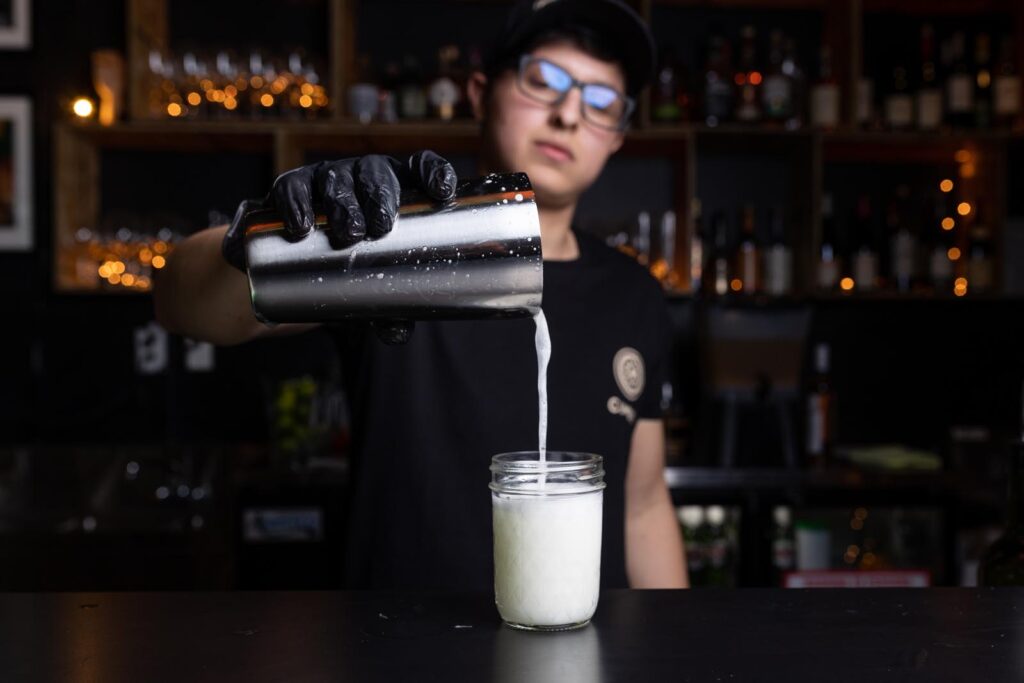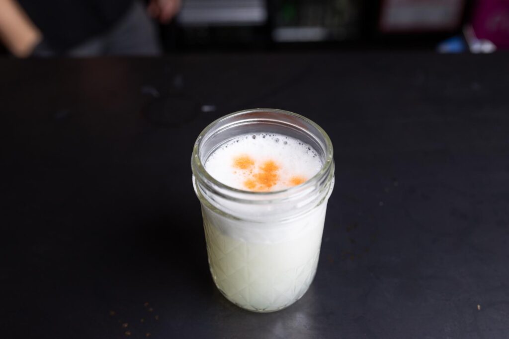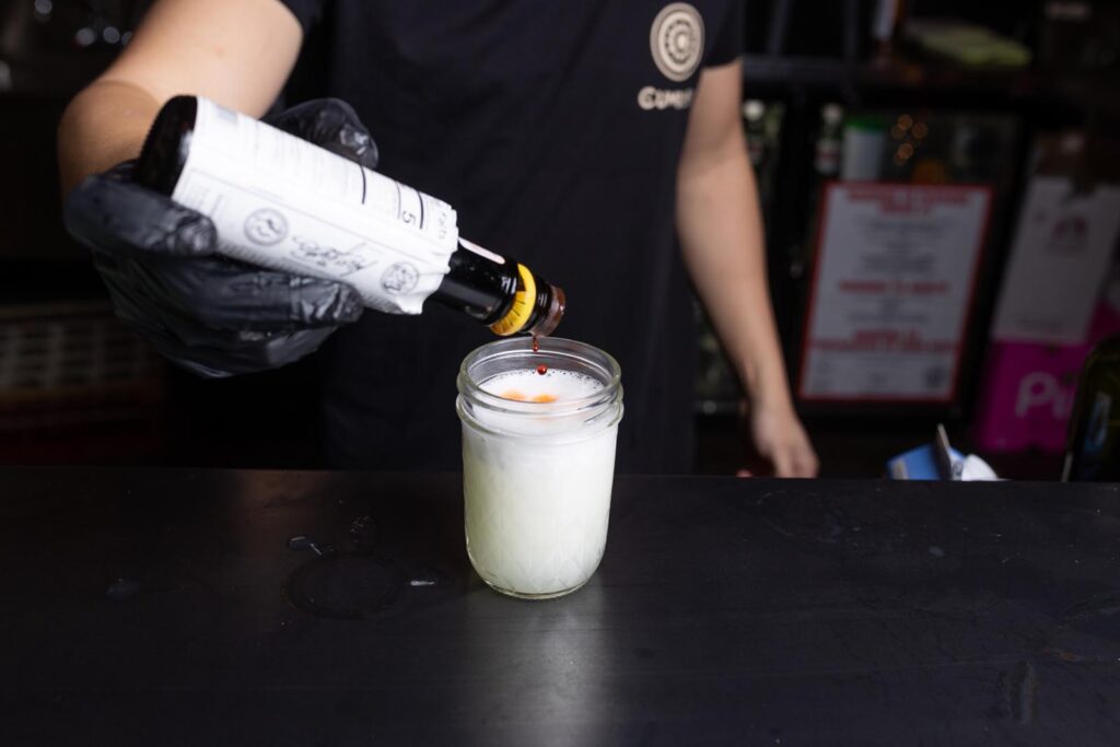Step 2: Combine 2oz Macchu Pisco, 1oz lime juice, 1oz simple syrup, 1oz egg white in a shaker and shake for 10 seconds