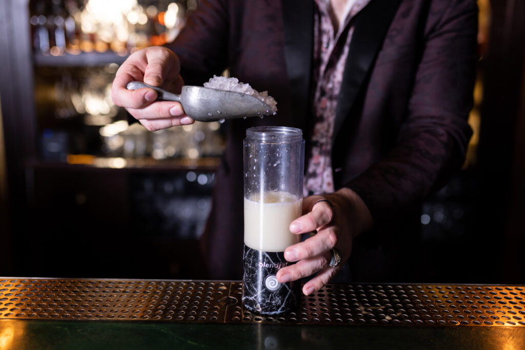 Step 2: Combine first four ingredients in blender with ice
