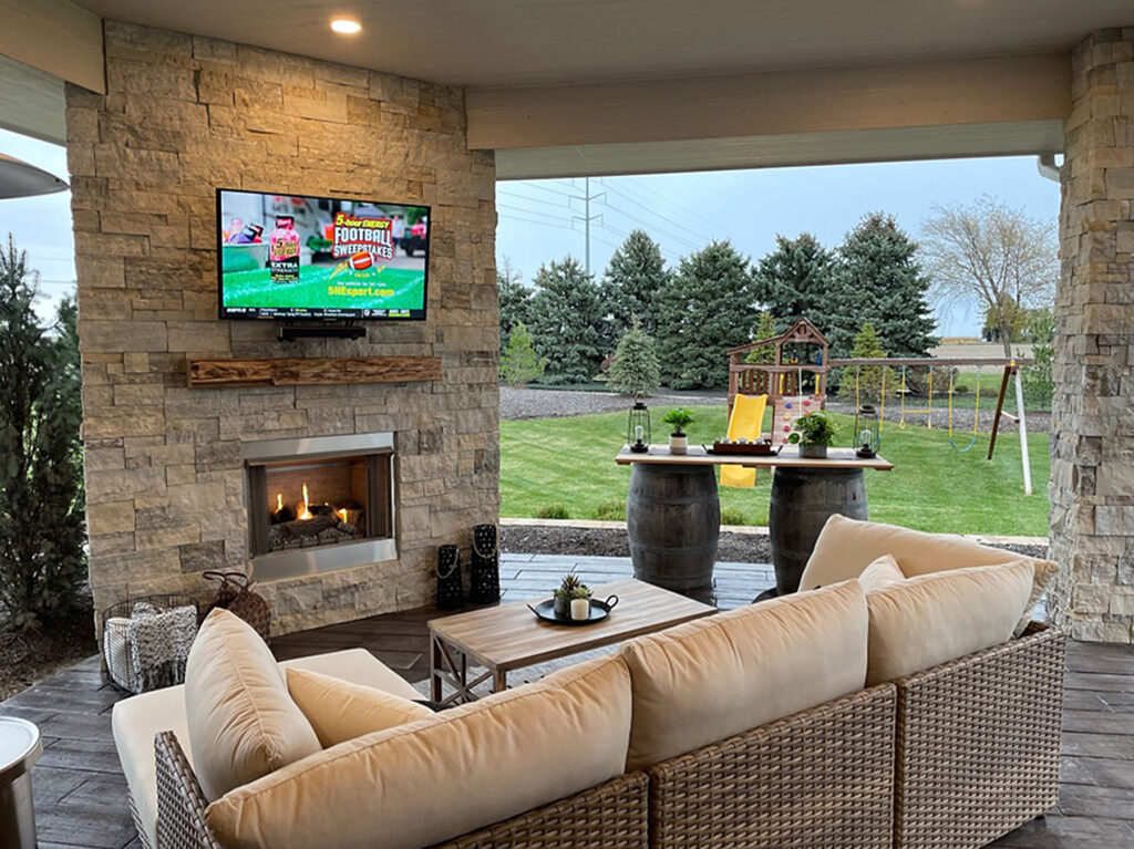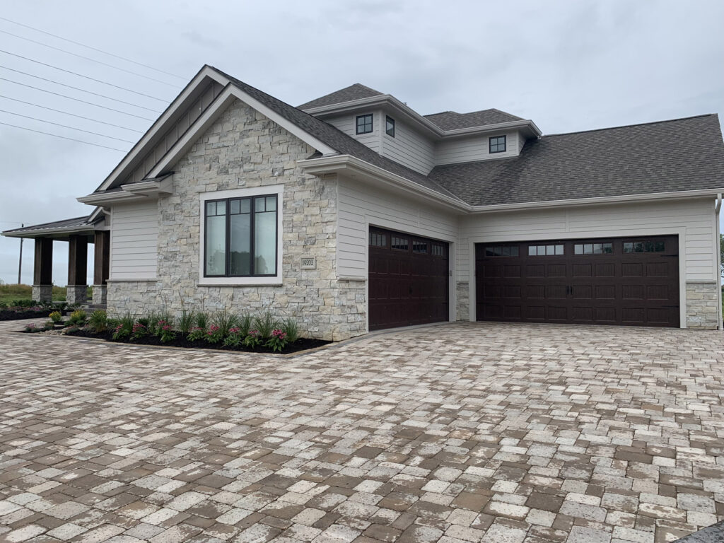 For the design and build, they enlisted a long-time family friend who owned a home building and commercial construction company. The process was seamless and took a little over eight months to accomplish. Owned by Joneson and fellow business partners Scott Butcher and Mike Brown, Hardscape Contractors—a one-stop company specializing in outdoor living spaces and landscaping—completed the natural stone veneer on the house, as well as the paver driveway and outdoor living areas.