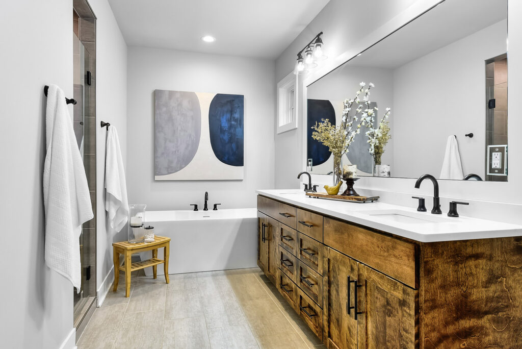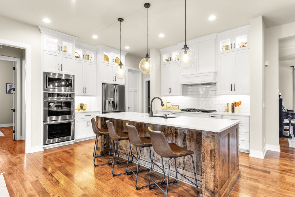 The Jonesons began their custom build project in 2019 after remodeling their previous home and realizing they needed more space to accommodate their household. After a thorough hunt for the ideal location, the Jonesons chose a one-acre lot in Indian Creek Estates to put down their roots. “It’s a beautiful neighborhood in the Elkhorn school district, which was very important to us, and we loved that it was a little off the beaten path but still had so many amenities close to us,” Mike Joneson said. “It’s not overly busy, and we loved the feel of the area.”