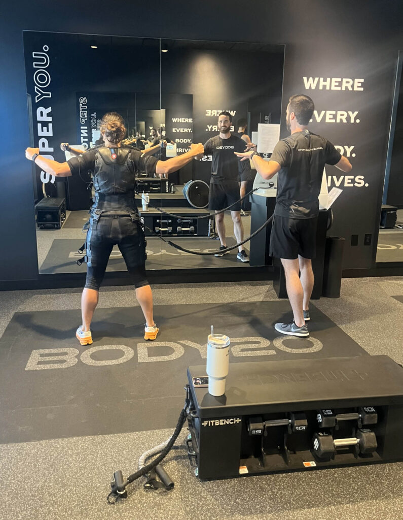 BODY20, which the Boyens opened last December, is a training program that combines intentional, controlled movements with an electro muscle stimulation (EMS) suit. The suit mimics the impulses your brain sends your body when exercising, creating muscle contractions on a level that would not be normally achieved with traditional modalities of movement. The impulses are delivered to 16 major muscle groups and create up to 36,000 muscle stimulations in a 20-minute period, which is 150 times more than a traditional workout.