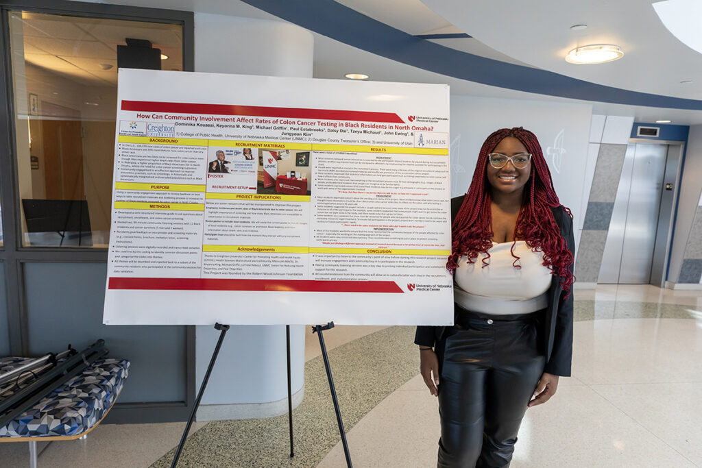 Kouassi: What stood out was seeing the health disparity of colon cancer in African Americans within the Omaha community. I knew colon cancer affected African Americans more than any other race, however, I never stopped to think about how that affects the community around me. Being able to be a part of spreading research-based awareness for this issue was very meaningful to me. I also enjoyed the volunteer work I did. During the SRI program, I volunteered with one of my mentors, La’Trese Rideout, at “A Mothers Love,” in which I helped fold baby clothes and organize diapers to give back to mothers in the Omaha community.
