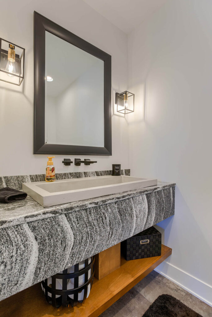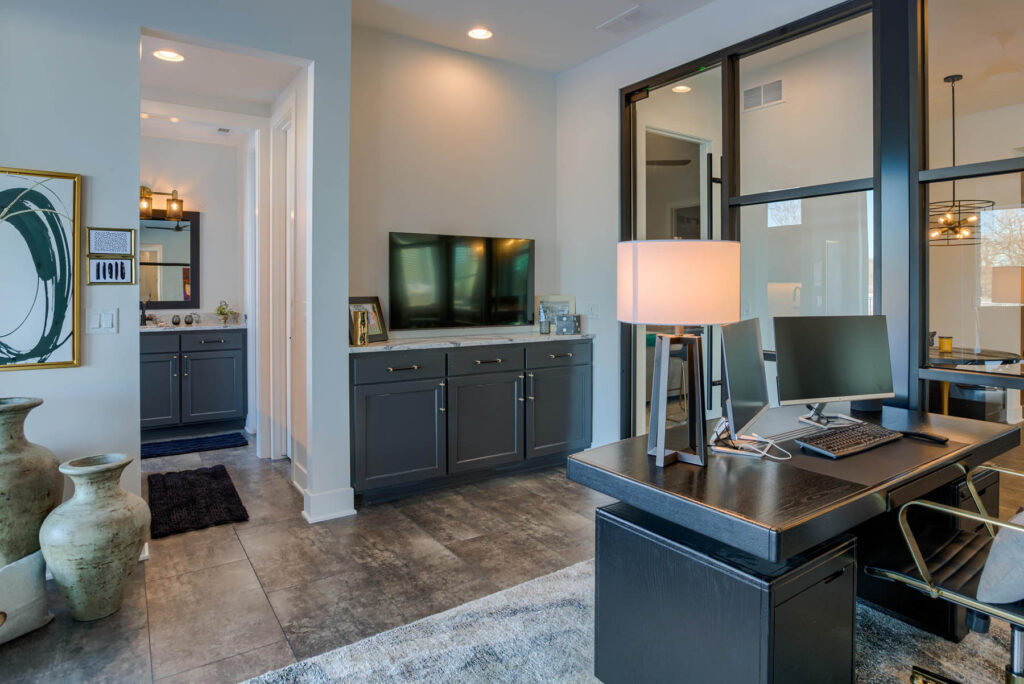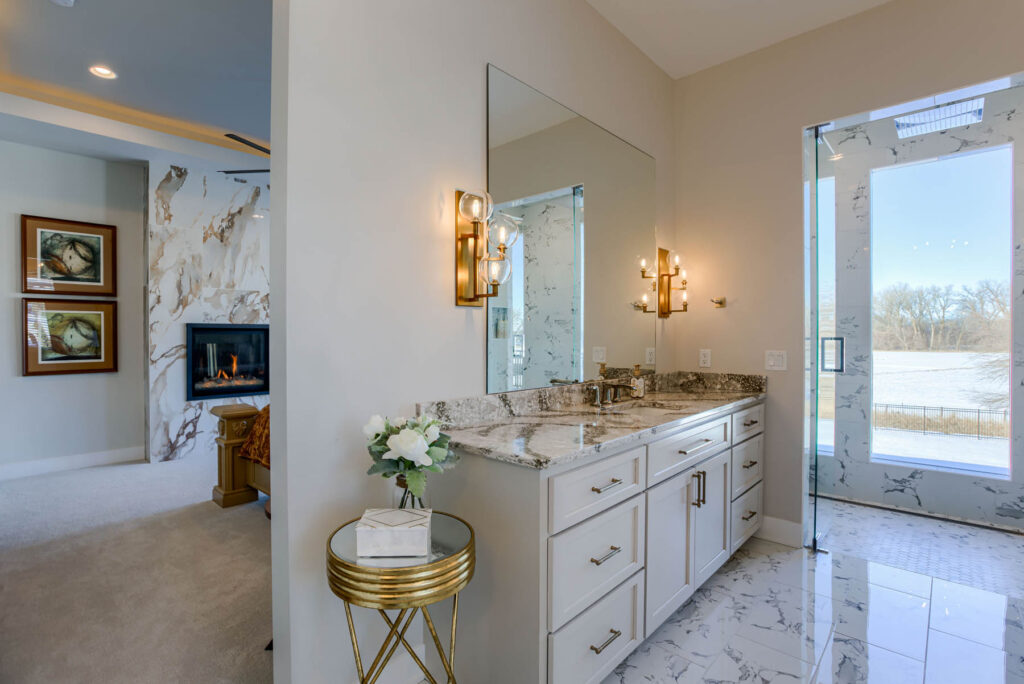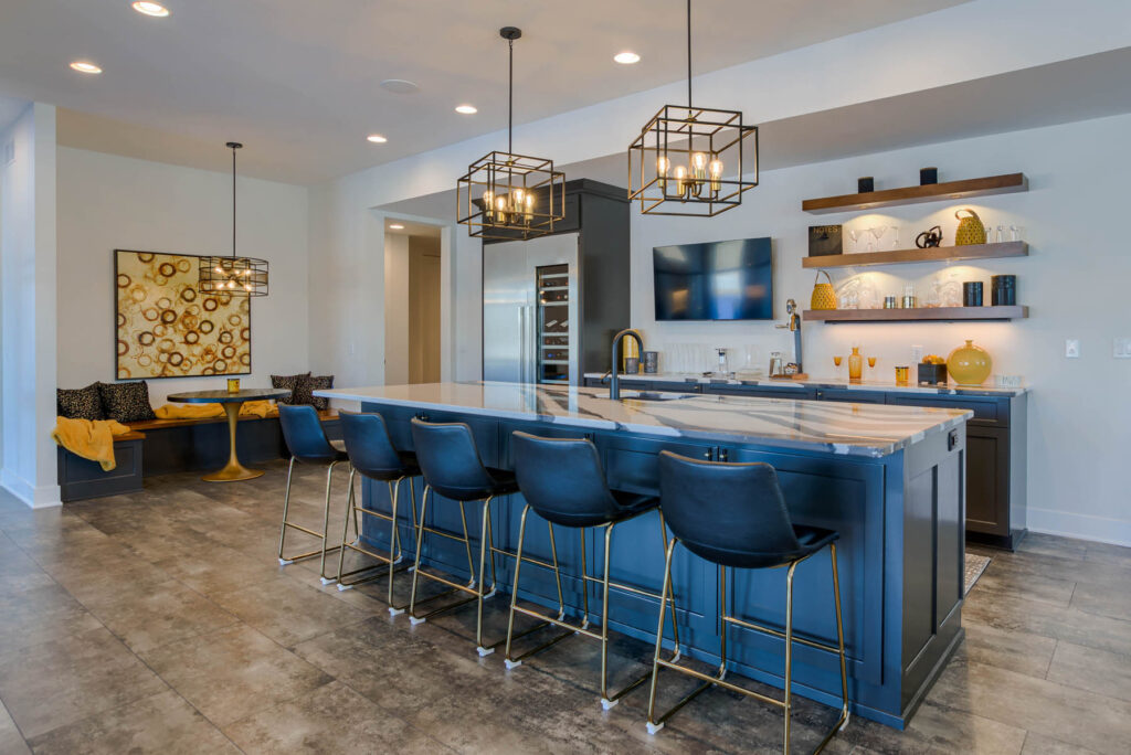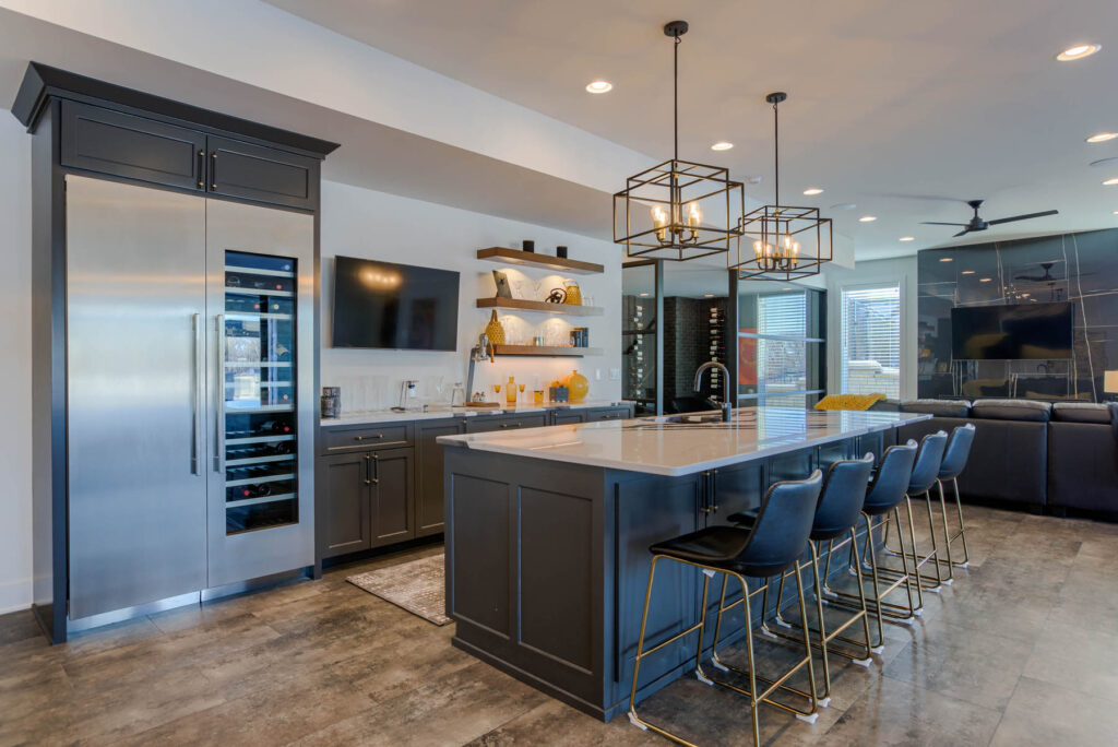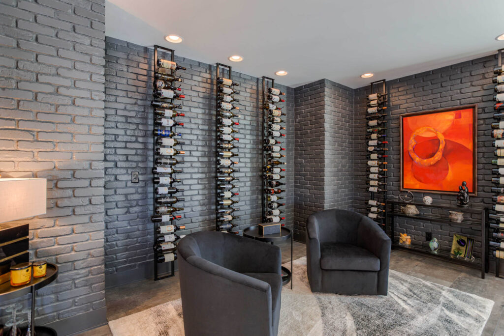 “The lower level, which doesn’t feel like a basement at all, is just as special,” Southwell said. “We have quite a few windows to allow as much daylight in as possible. Both our wine room and my husband’s office are built with glass walls. The space is very unique, showcasing black and white quartz with gold, which is all very contemporary looking. It has easily become one of my favorite aspects of the home because it has already become a gathering spot for the family.”