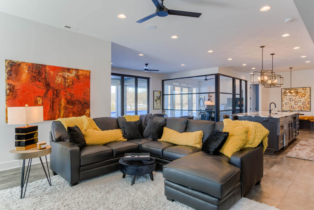 This particular California modern home, which features spacious living areas, unique interior design details, as well as stunning indoor and outdoor entertaining spaces, was built to reflect the couple’s contemporary style, while also incorporating some midwestern charm. Although expansive, the main floor is very warm and welcoming.