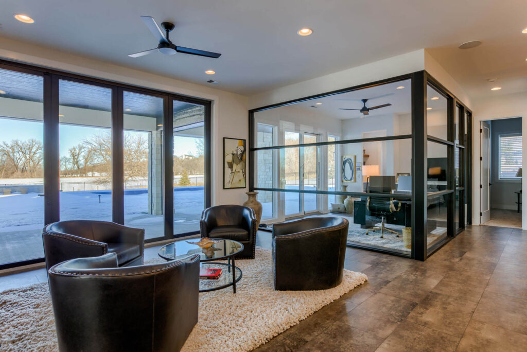 The location of this home is also rather spectacular, as it sits adjacent to the Elkhorn River Valley. The property backs to a common area with nothing between it and the river, allowing for wondrous views of the landscape. Both originally from rural communities where wildlife and scenic views were more present, the couple was attracted to the nearly one-acre lot because it felt like a piece of their roots.