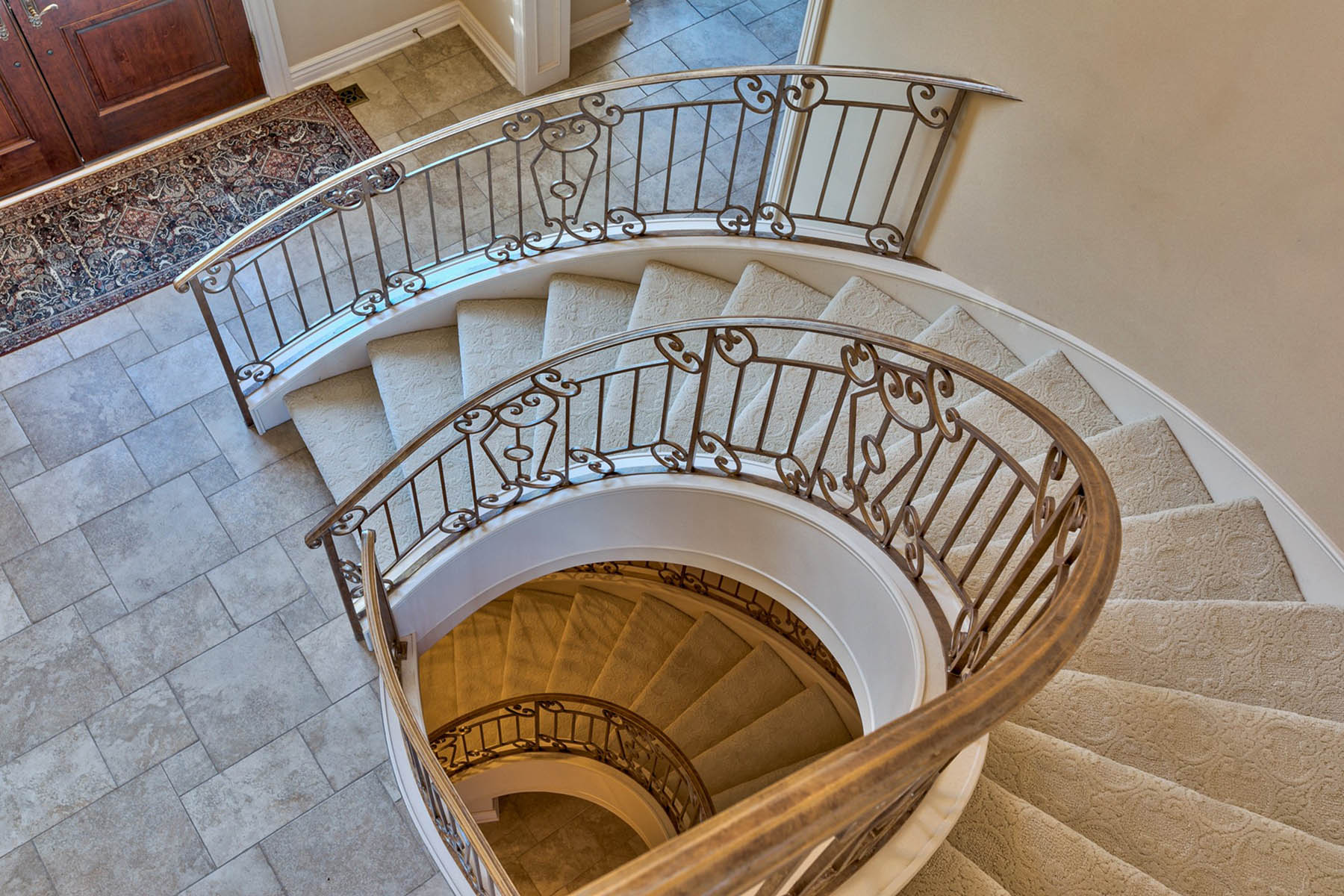 On the outside, the impressive sculpted landscaping and all-brick exterior foretell the elegance that is yet to come upon entering the 1.5 story home. A charming foyer, vaulted ceilings, a custom floating spiral staircase, and quality finishes decorate the inside. An inviting study also lies nearby, offering both a daily workspace and a cozy place to retreat.