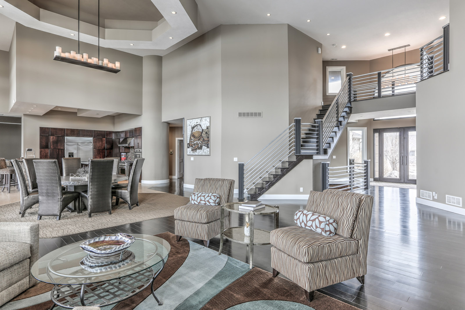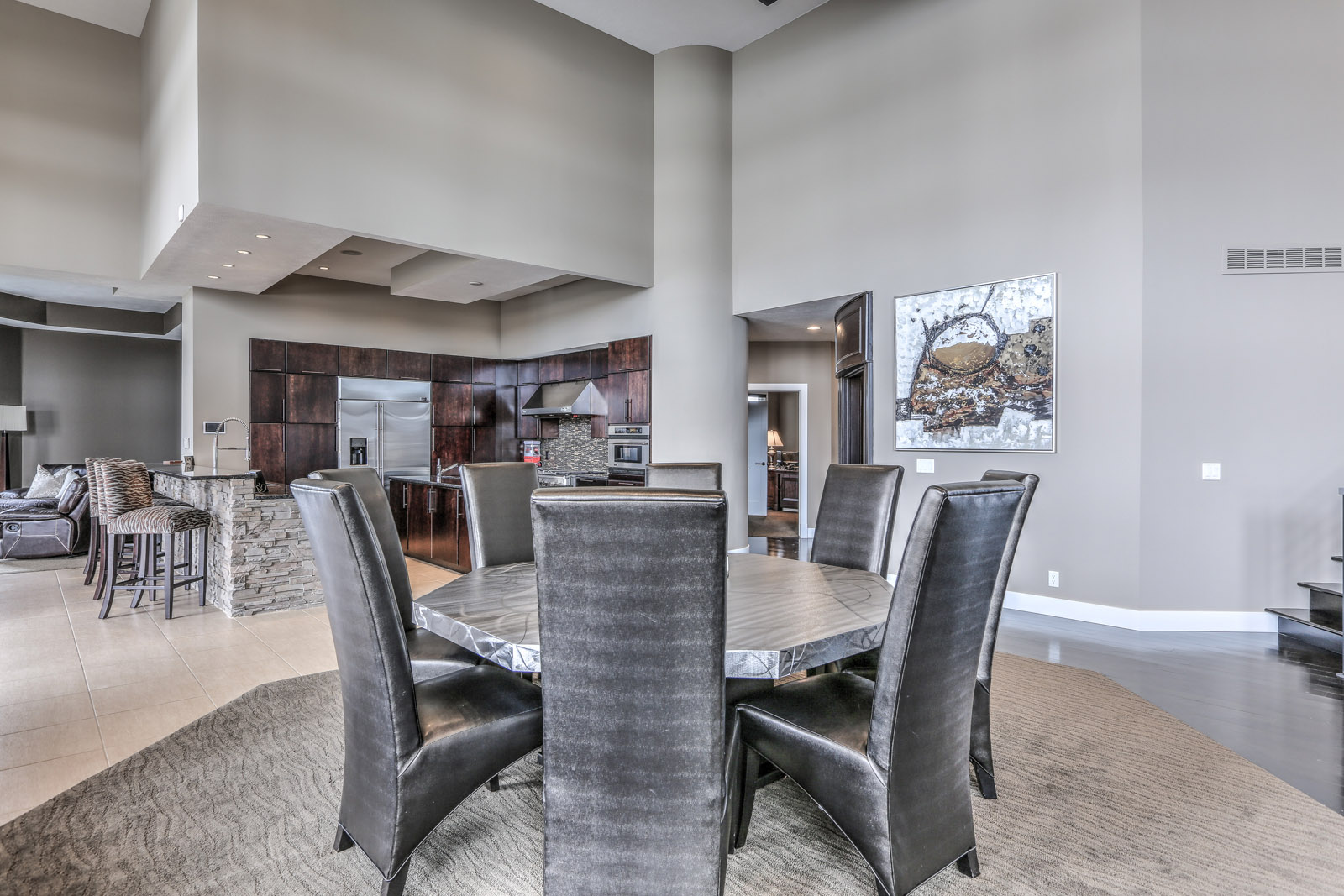 In fact, nothing says “ideal entertaining space” quite like a 9,500 sq. ft. property situated on an acre of land with a lakefront view. Located in the Bennington school district, this modern five bedroom and bathroom property presents all the amenities that lake life has to offer, including fishing, boating, water skiing, swimming, and spectacular views. Just a few miles from the town of Bennington and 20 minutes from midtown Omaha, the community provides a 280-acre lake in a tranquil setting. This specific home is not only perfectly positioned for views of the cove, but it also offers a more private location.