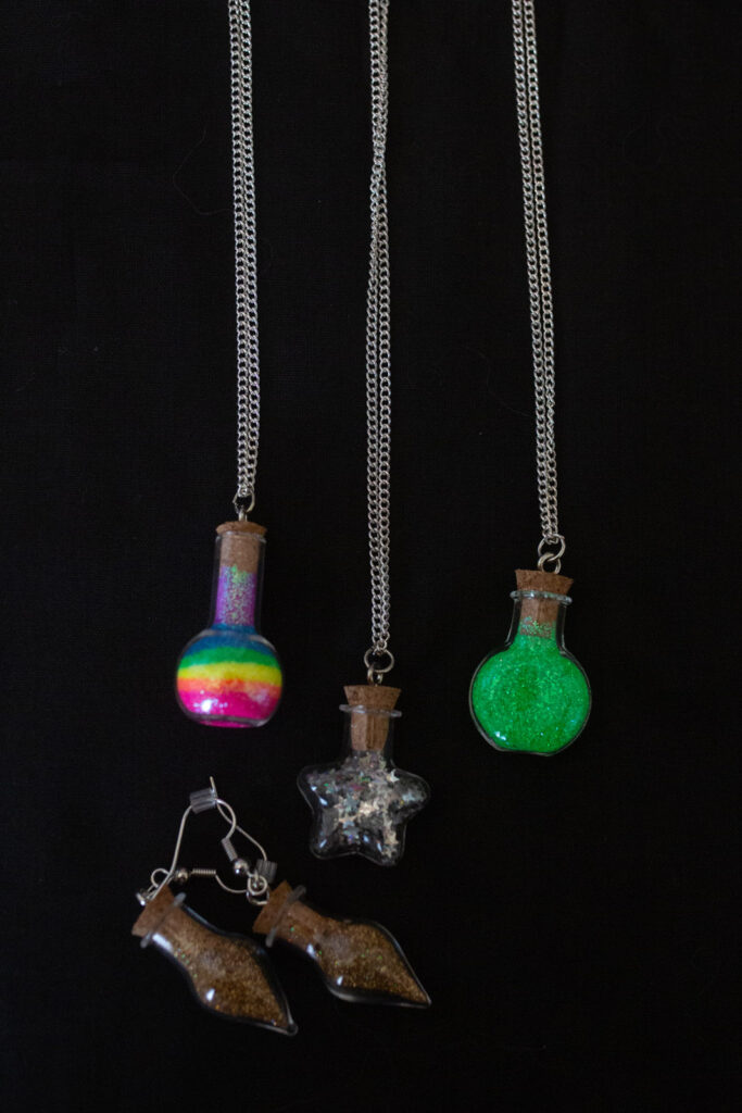 Lopez: I get my ideas from reading. My favorite books are Harry Potter, Eragon, and The Hunger Games. The wands and aromatherapy owls were inspired by Harry Potter, and the dragon necklaces I make are from Eragon.
