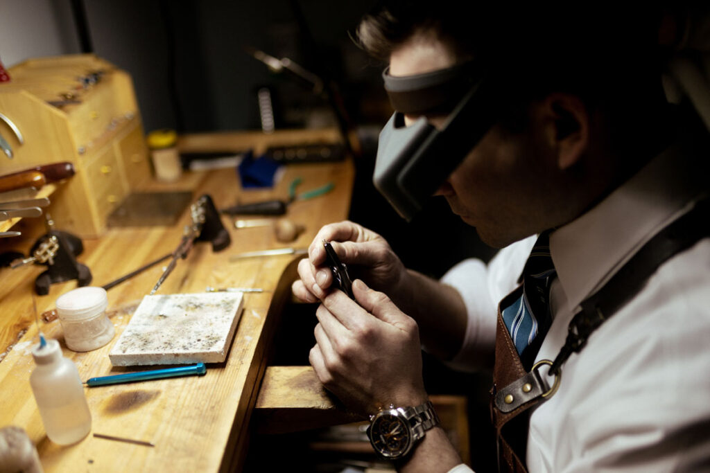 Master Goldsmith and Watchmaker Garrett Peddicord grew up in the industry, but not through a family connection. At age 14, while working at a fast-food restaurant at a local mall in Baltimore, MD, he delivered breakfast every morning to the owner of a jewelry repair shop. His interest in the business led to an apprenticeship where he learned the craft of goldsmithing. Several years later he became certified through the Gemological Institute of America and also earned his Master Watchmaker certificate. By age 19 he managed a Zales location and a year later opened his own trade shop and serviced 11 jewelers throughout New England.