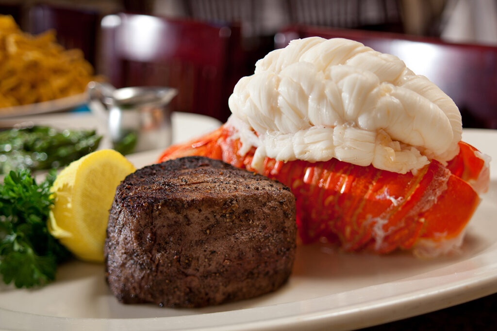 Starters such as the succulent cocktail shrimp, lobster cargot, or crispy onion ring tower whet the appetites of diners, and the classic caprese salad combination of tomatoes, basil, fresh mozzarella and balsamic vinegar provide a platform for garden produce to shine. Custom-aged U.S. Prime midwestern beef cuts comprise the steak menu, and varied sides, sauces, and accoutrements encourage diners to create their own flavor profile to satisfy their palates.