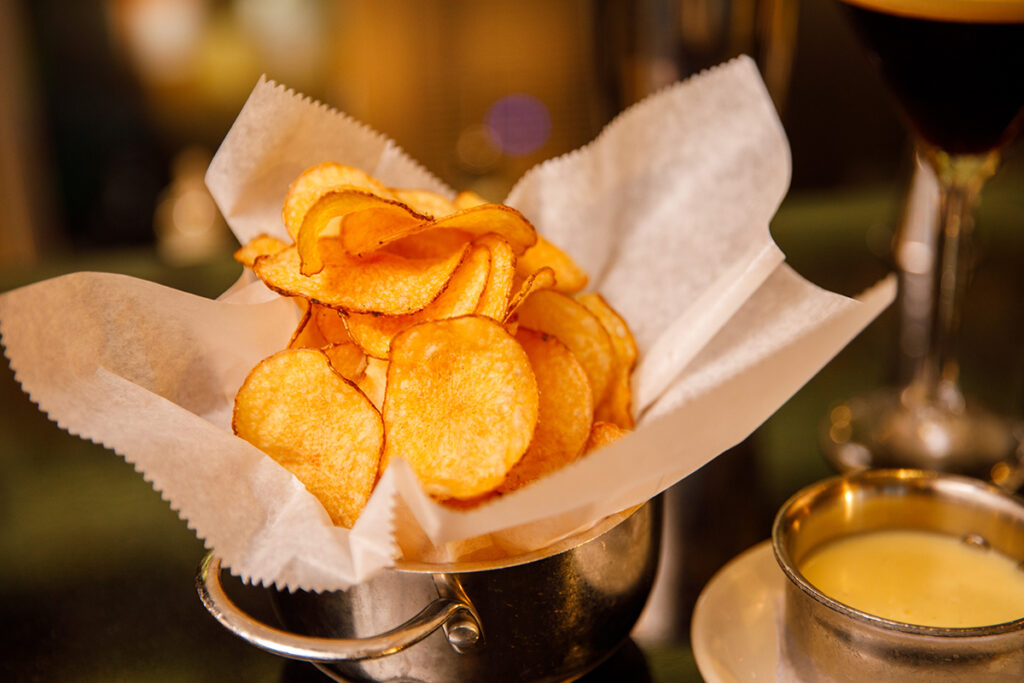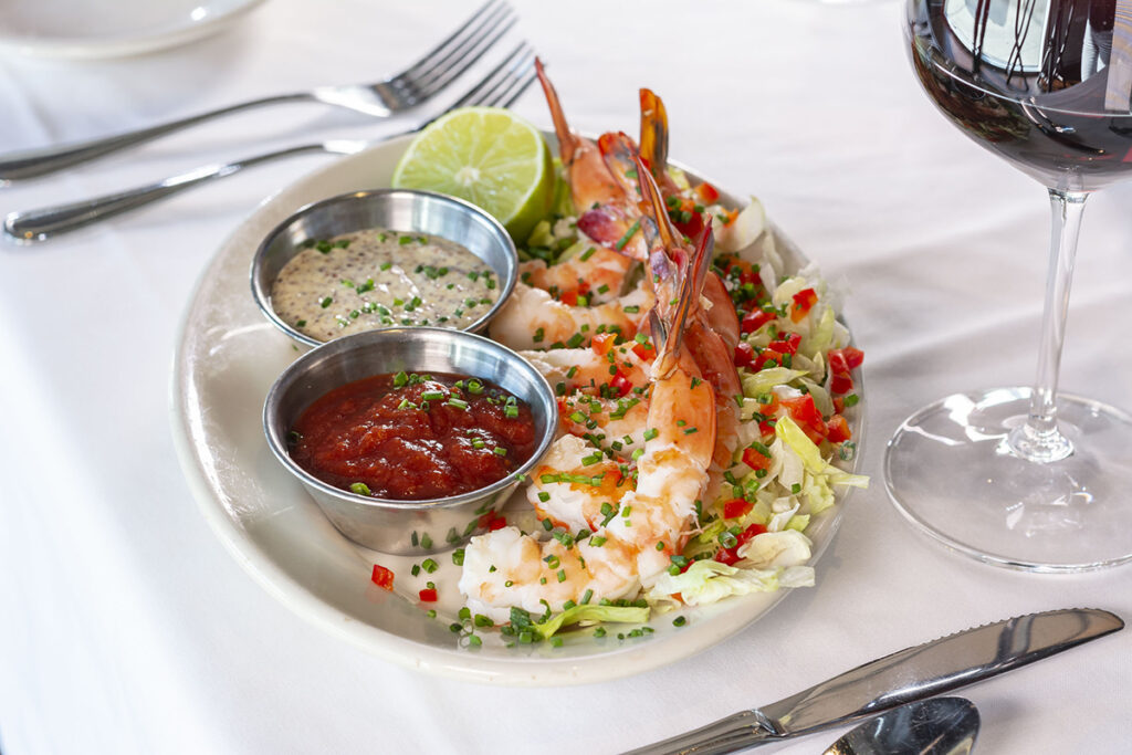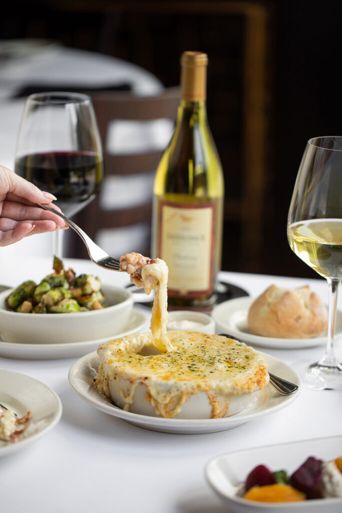 The beverage program is what you’d expect to find at a classic steakhouse—whiskies, craft cocktails, and red wines such as big, bold Napa cabernets, Bordeaux blends, or global Pinot Noirs. Craft cocktail menus are changed seasonally, always including a nonalcoholic version. To wit, the current menu features the Cranberry Sauce whereas the mocktail version’s moniker is Cranberry No Sauce.