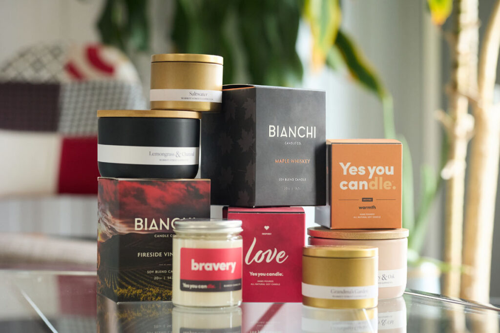 The company markets four candle brands—Bianchi Candle Company, Yes You Candle, Market Street, and Modena Candles—along with a contract manufacturing company that will put Bianchi’s all-natural, recyclable candles in 30,000 storefronts nationwide. Growth of 1,000% last year is making way for projections of 50 times that number in 2025. And Bianchi’s products will share nearly every shelf with household names in the industry. “That will be a cool sight to see,” Bianchi said of the company’s competitive footprint.