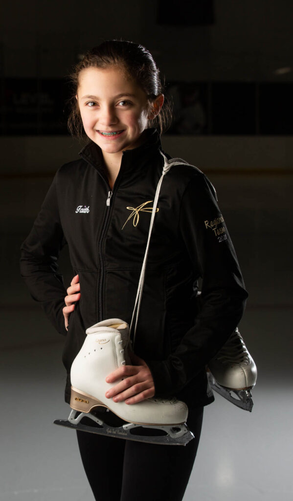 Faith: I want to get to juvenile. It’s a higher level and I’m almost at pre-juvenile. I have to do three double jumps and an axel in my routine. I’ve got my axel and I’m working on getting those doubles now. My long-term goal is to get my senior moves and gold medalist jacket.