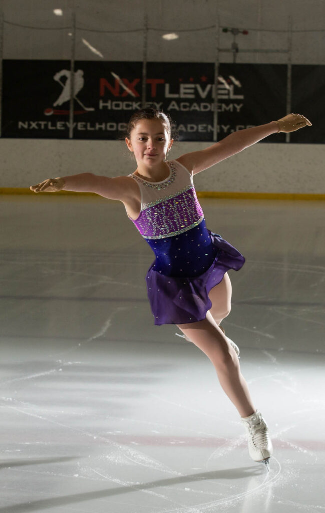 Dawn (Faith’s mom): She started competing three years ago. Normally she does six competitions a year, but this past year because of the pandemic she only did four. Since she switched to Moylan Premier Skating Club, she’s made huge strides.