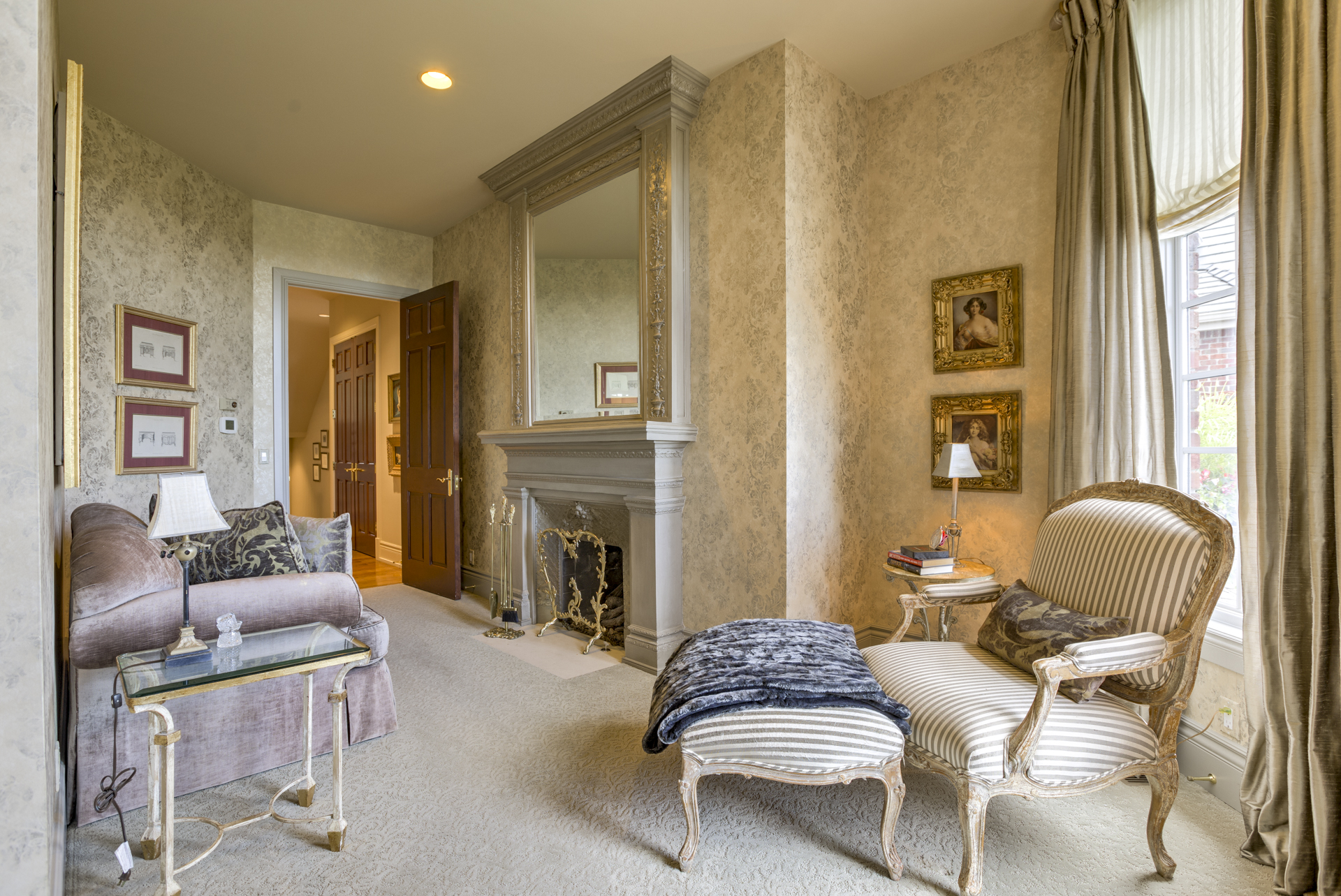 The home’s décor is a mix of traditional and contemporary. Many of the home’s pieces were purchased during the homeowner’s travels, such as the light fixtures from New York, the master bedroom fireplace from France, and a number of antiques from around the world. A number of rooms in the home are also adorned with unique styles of wallpaper that still have a timeless look.
