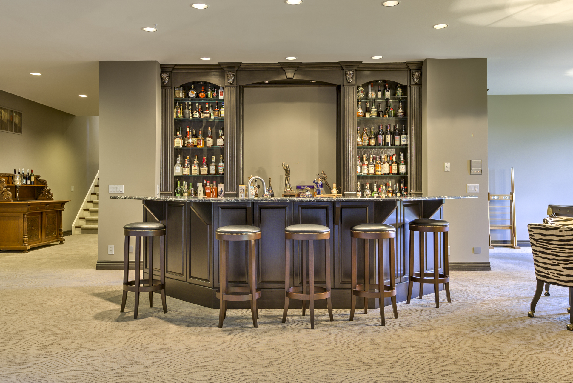 The homeowners borrowed a floor plan from a house in Atlanta they liked and had McNeil alter it to the fit the lot. Their goal was to have enough space for their family of four as well as space to accommodate large groups for entertaining. They had no problem accomplishing both. The five bedroom, 6 bathroom home provided plenty of space for individual family members to spread out, especially in the basement, with its oversized living room, pool table room, home gym and sauna, as well as the golf simulator room, which can be converted into a home theater.