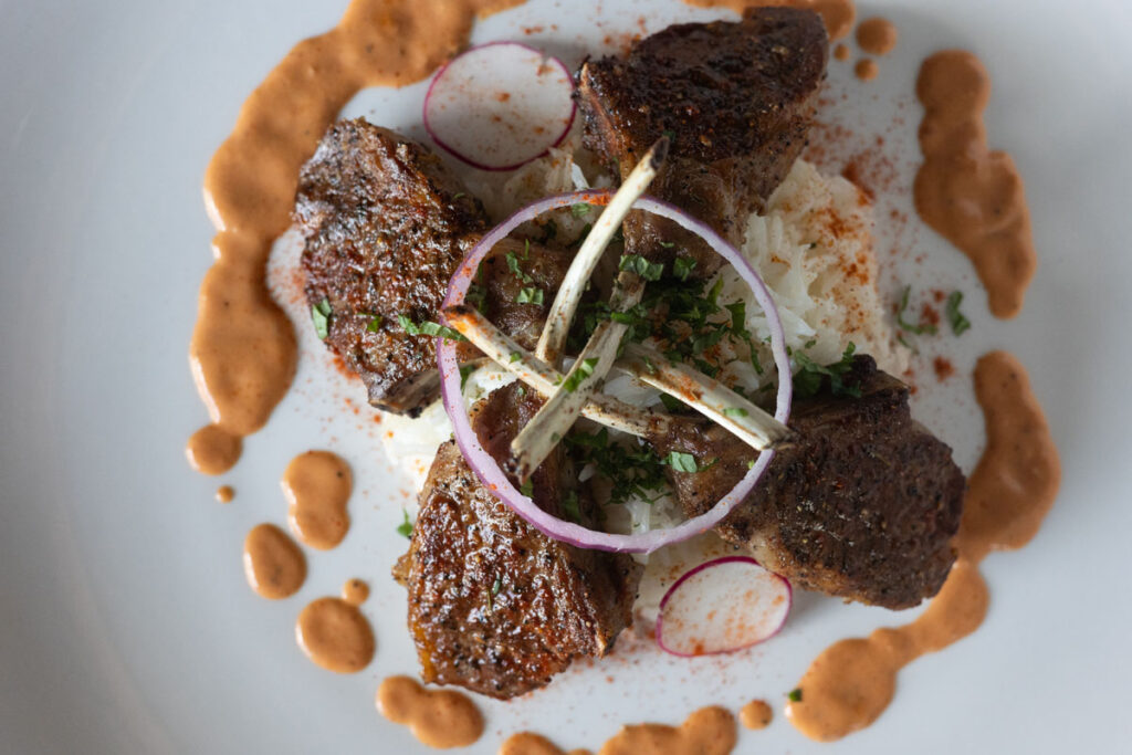 Staple traditional dishes such as tikka masala, korma, and vindaloo found early spots on the menu, but look for inventive twists and innovative plating that take the experience to a new level. The saffron lamp chops are a delight to behold, and rib eye vindaloo melds Midwestern steak with Indian flavors in a lovely manner.