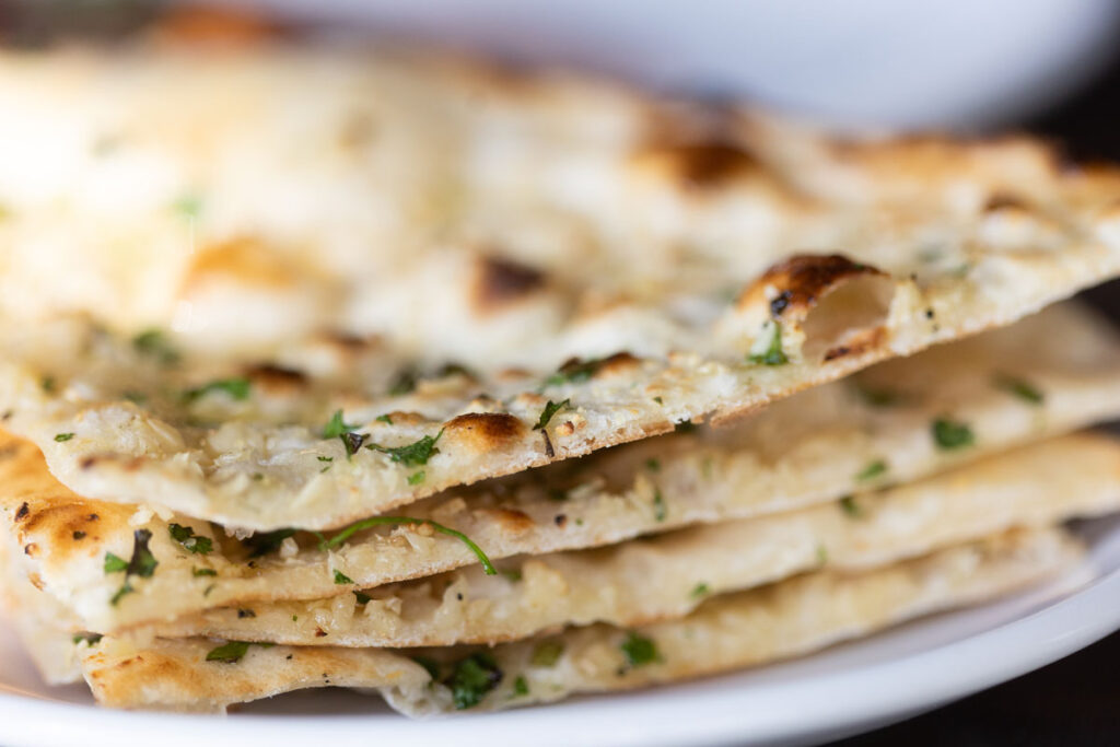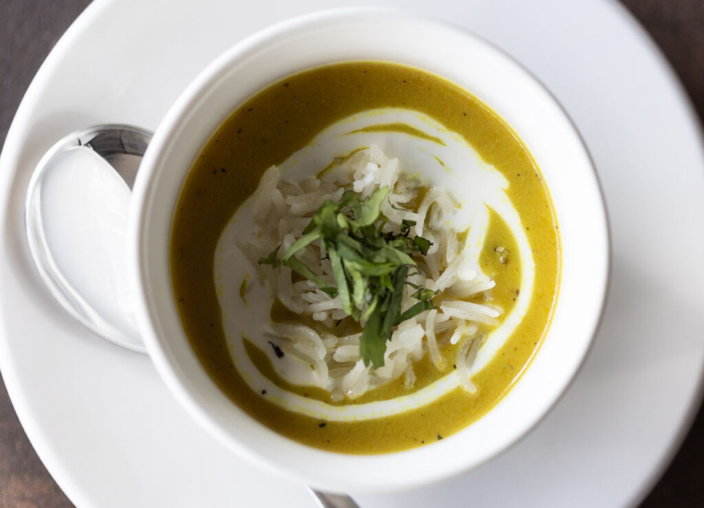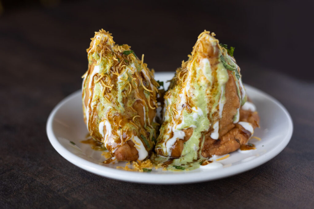 Growing up in Nepal just over the southern Indian border gave Bhattarai an affinity for certain aromas and flavors. In addition to his mom’s cooking, the executive chef remembers fondly other childhood favorites snagged from the ubiquitous moving street stalls. Snacks such as samosas and panipuri, a hollow fried bread with a light puffy crust, filled with potatoes, peas, and tangy tamarind chutney evoke warm memories. These flavors and aromas found their way to the appetizer menu at Saffron.