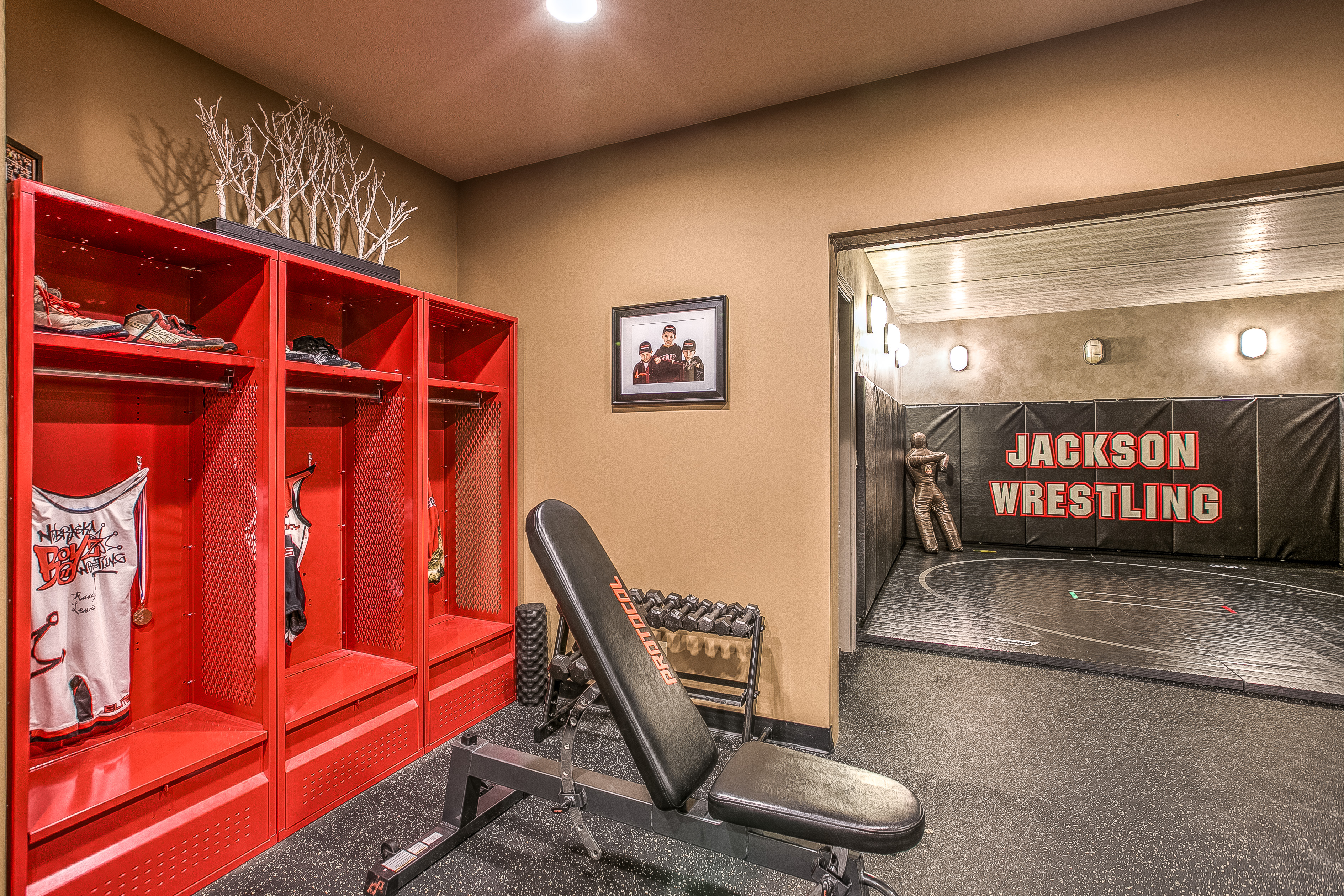 When planning to build a house, most homeowners have certain requirements to meet their lifestyle. For Rebecca and Darrin Jackson, the list was short but important to them: a large mud room with wall-size family organizer; second-story laundry room large enough to accommodate two sets of washers and dryers; an outdoor pool; and a wrestling room where their three sons could train.