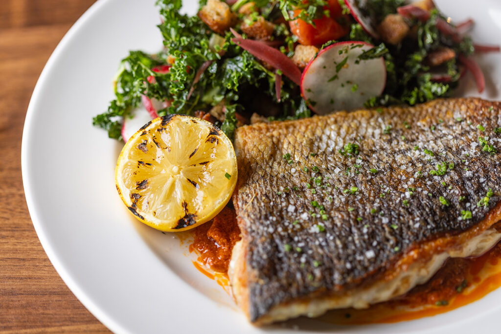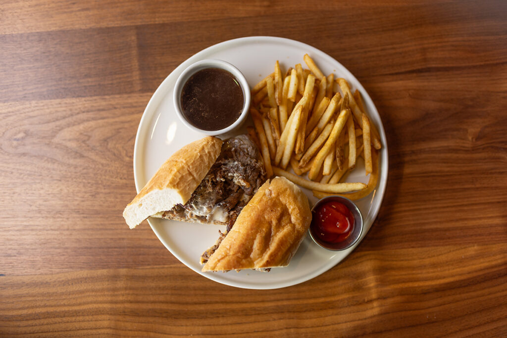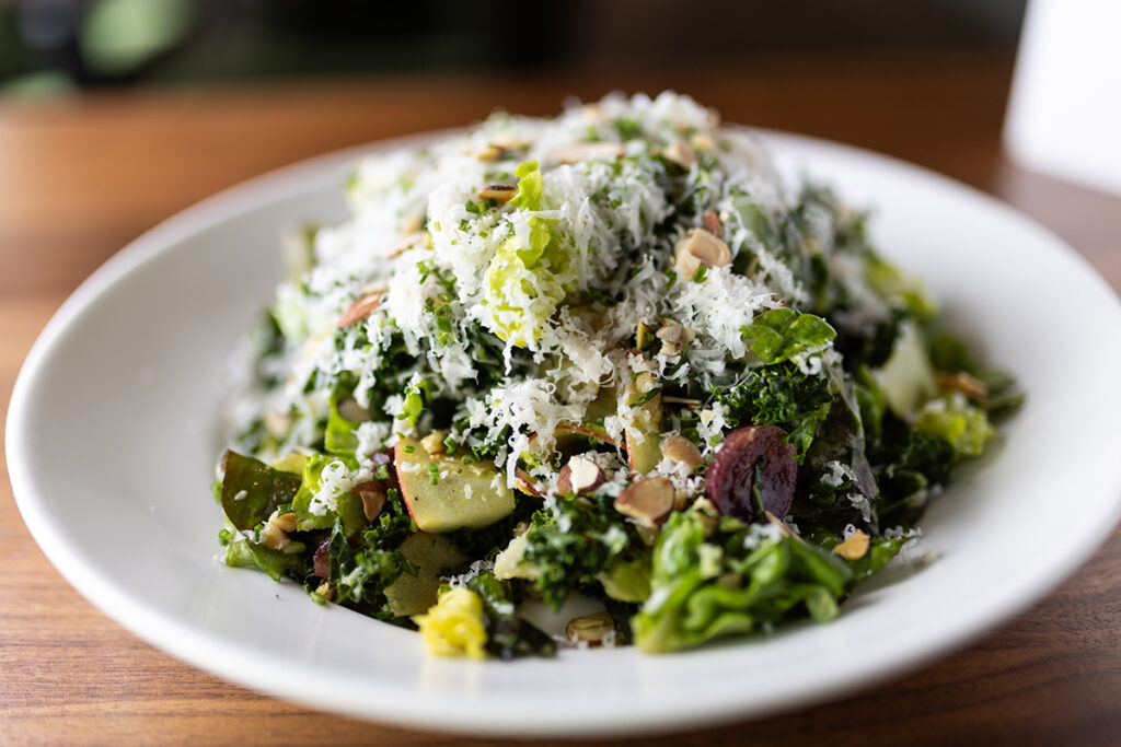 Generous salads and sandwich offerings include the kale and farro salad in which hearty greens and grains are tossed with shaved parmesan, sliced almonds, charred grapes, thinly sliced apple, and aged goat cheese and drizzled with a turmeric vinaigrette. Sandwich lovers will relish the Memoir dip au jus with horseradish aioli and fries.