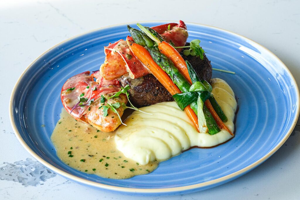 The upscale casual contemporary menu is brimming with dishes featuring high-quality, locally sourced products. Beef hails from purveyors Niman Ranch and 1855 Black Angus Beef; produce from Nelson Produce Farm and Leafy Greens; and fungi from Flavor Country Farms.