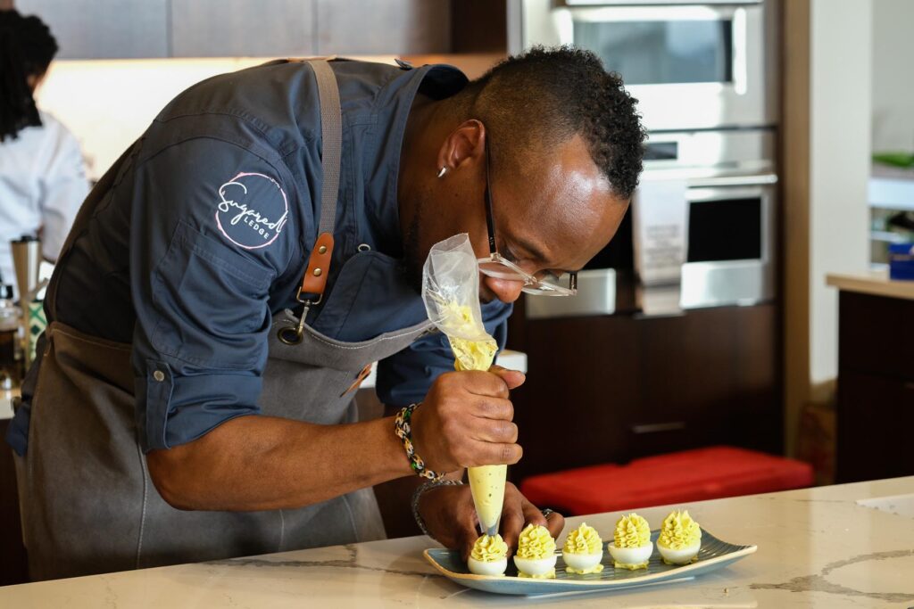 Hassanali is proud to be a part of an ambitious project like Salted Edge. “I’ve been doing this for over 26 years, having the pleasure of traveling and working with amazing chefs, and am grateful now to be chef partner of an incredible restaurant.” He’s learned many things through the years, but the biggest lesson is the importance of sharing knowledge and helping others learn and grow. The management team at Salted Edge fosters a welcoming culture in which everyone is comfortable being themselves while striving to meet high expectations and standards. Hassanali further recounted, “There is a sign in my kitchen that lists the three F’s: Fun, Firm, Fair.”