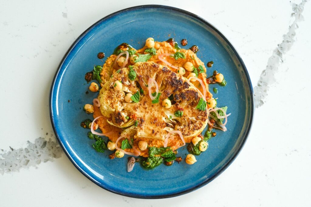 Inspired by his myriad travels, Hassanali is particularly fond of melding robust, intense flavors with classical techniques when developing new recipes. He described one of his recent favorites as, “A scallop dish with carrot and squash puree, crispy pork belly, and pea dust finished with maple butter-seared Brussels sprouts.” The scallops are seasoned with his signature spice blend, a base of coconut palm sugar combined with 12 spices, available for retail sale at the restaurant.