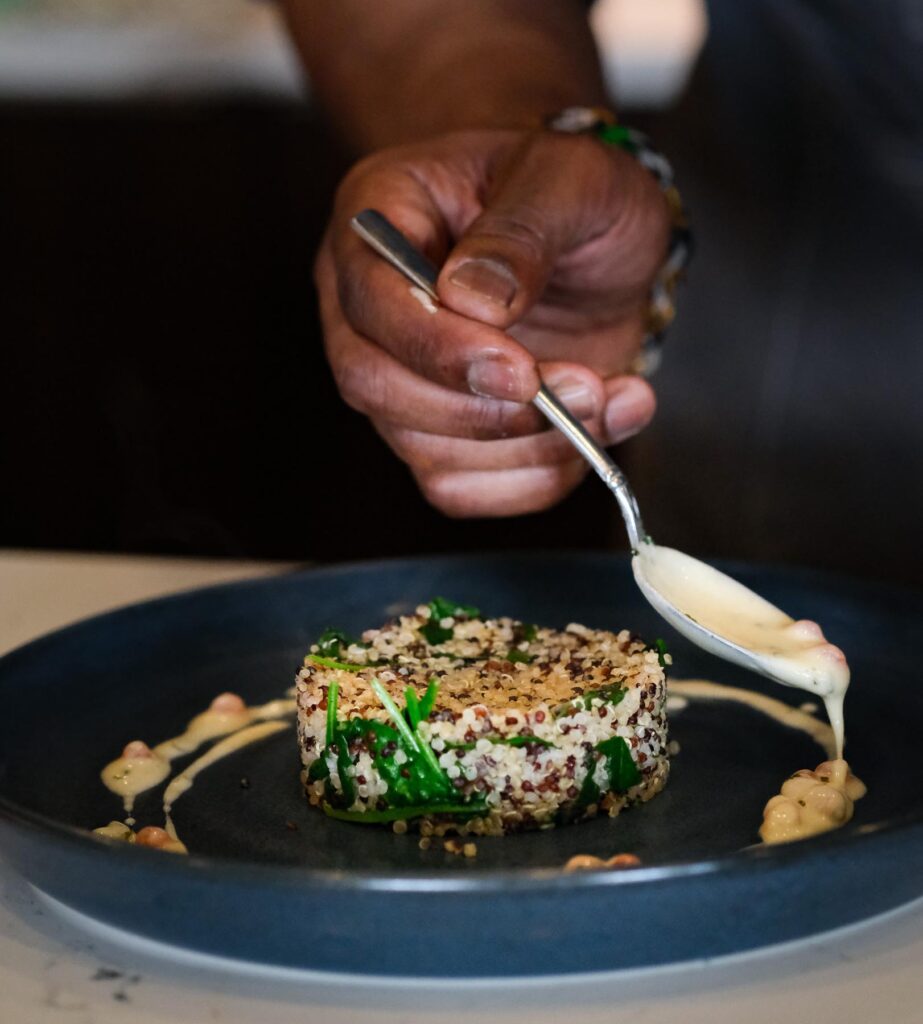 Hassanali’s affinity for cooking and hospitality started with his after-school perch on a wee stool in the kitchen of his parents’ Trinidad restaurant. The fervor has not faded since his days watching them harvest vegetables from the garden and transform them into warm plates of goodness. “I love putting a smile on people’s faces with cooking, it’s an art where you can create something really beautiful,” he said.