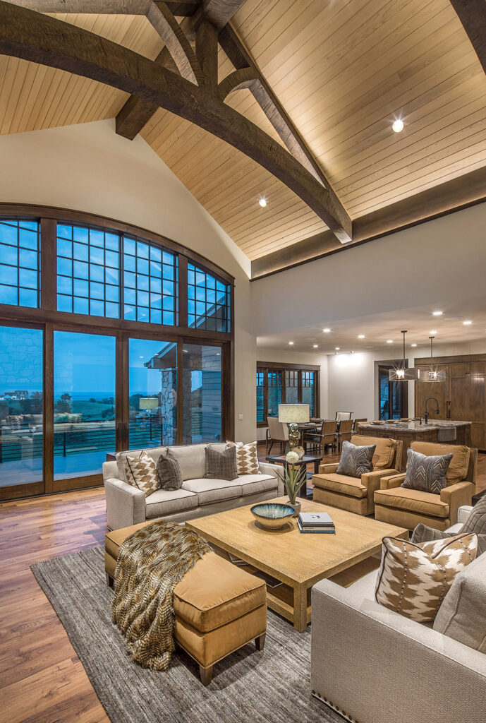 This home’s design was derived as an homage to the setting and the architecture, while honoring the homeowner’s way of life. As people mature and settle into their lifestyle, they also settle into the reality and acceptance of their individual style preferences. This couple was confident with what felt comfortable to them, and they ultimately chose to transition from a soft contemporary influence to wrapping themselves in a quieter, cozier atmosphere and architecture. Cooper’s design solution for this transition met their needs by putting aside previous conceptions of their more modern influence and tuning in to what they are presently desiring, which is a warm and casual home to share with friends and family.