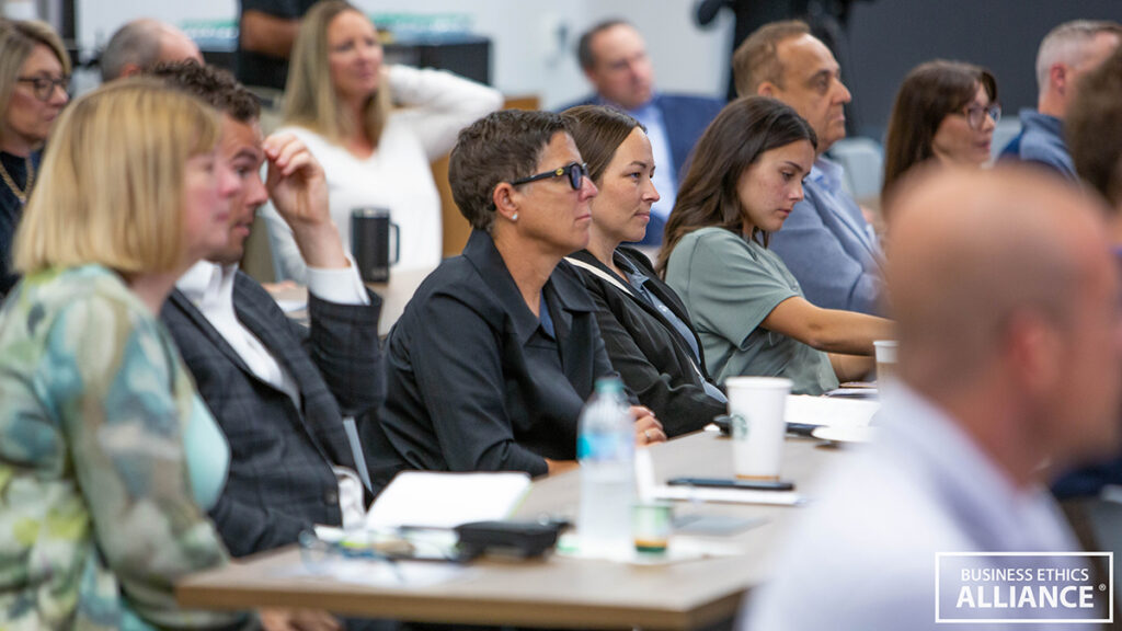 “That’s what we’re charged with,” said Jessica Schaaf, Business Ethics Alliance Director of Community Relationships. “How can we make topics that are scary or maybe have been given a bad rap more approachable for everyone to conversate and collaborate on? We’re very clear in saying we don’t have all the answers, that the topics are ever-evolving. But now the conversation is out in the open. Here’s a way to set the tone to have respectful conversations about these issues with your peers and your colleagues. It might be a scary one if it’s a hot-button topic, but there are ways to make tough conversations inclusive for everyone without harming your organization or being divisive.”